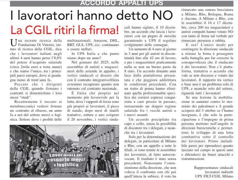 UPS/MdL di Rho. I lavoratori prendono la parola. Una serie di cambi di