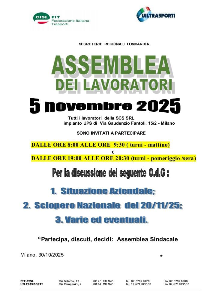 mobilitano anche i diretti UPS con 5 assemblee nelle unità di Milano, Vimodrone
