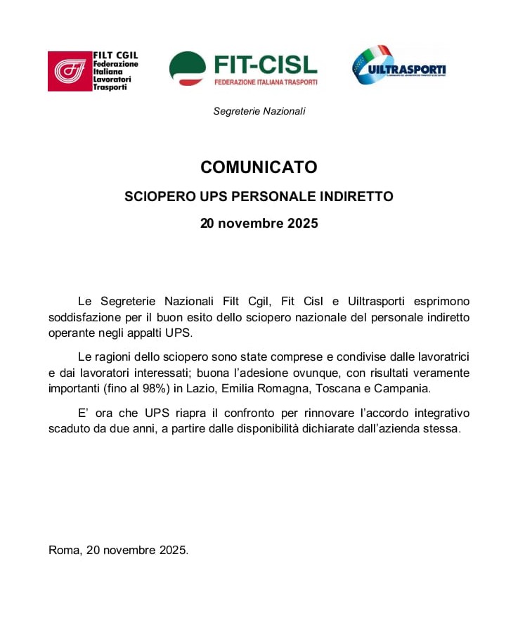 filiera UPS indiretti e valutazione sullo sciopero del 20 novembre